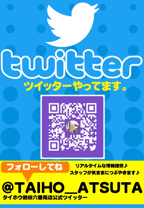 LINE@最新情報や詳しい台データなどなどLINEから受け取って頂けるようになります(^^♪↓こちらのQRまたはID検索からお友だち登録お願いします(^^)/ID @t-atsuta