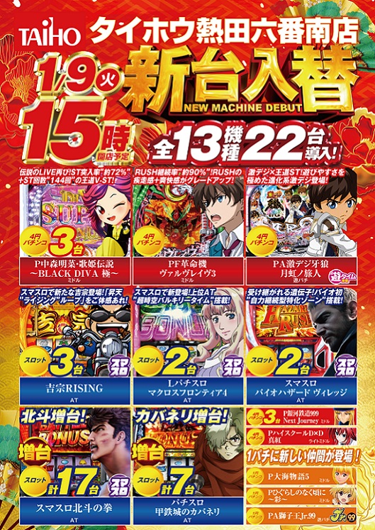 明日1月20日はタイホウグループ全店新賞品入荷予定です!