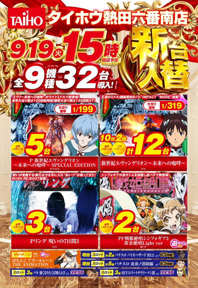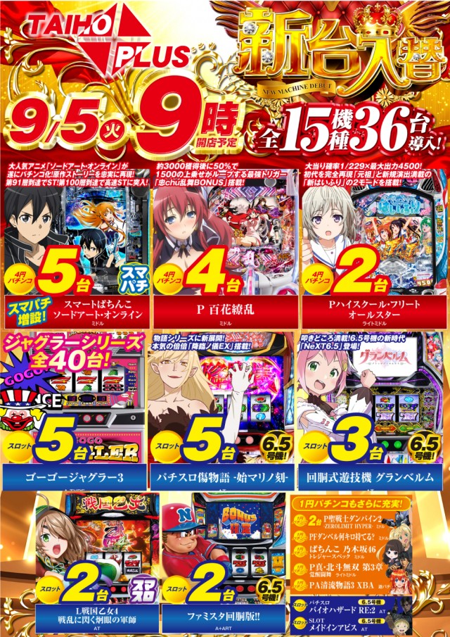 明日9月16日はタイホウグループ全店新賞品入荷予定です!
