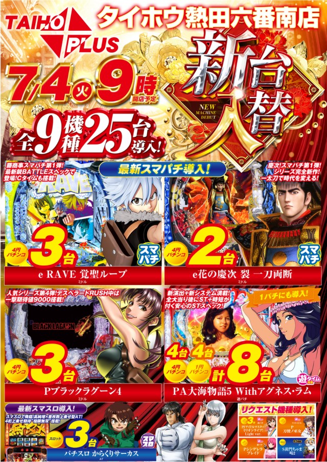 明日7月6日新賞品入荷!!朝9時OPEN!!