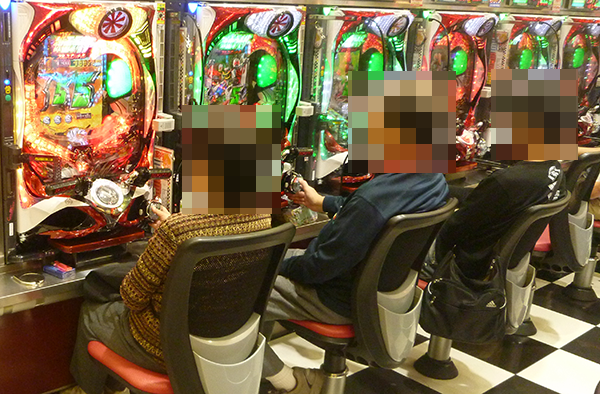 この日は、とくに新台が盛り上がっており、「CRぱちんこ仮面ライダー フルスロットル」にも空き台はほとんど見当たらない。