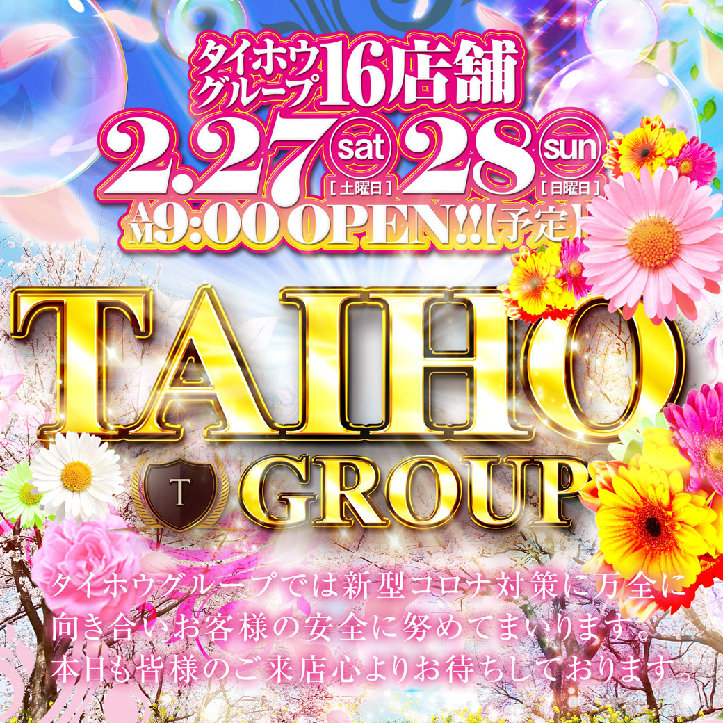 明日タイホウグループ全店合同朝9時開店♪