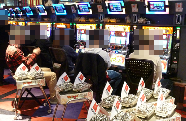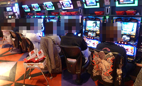20円パチスロでは、「沖ドキ!」の盛り上がりがもっとも大きく、ほぼ満席。