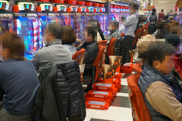 空き台がほとんどないという状況は1円パチンココーナーも同様で、パチンココーナーは様々な場所が大きく賑わっている。