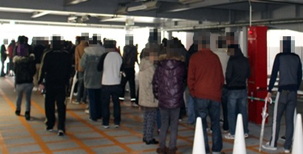 スタッフの話を聞いてみると、雨が降っていたため、これでも通常より人数が少ないとのことだ。悪天候にもかかわらず100名以上が集まる…というだけでも期待されていることの証だろう。