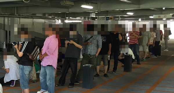 開店前に集まったプレイヤーは100名ほど。多くのプレイヤーによってできた長蛇の列は、見ているだけでもホールに対する大きな期待を感じることができた。
