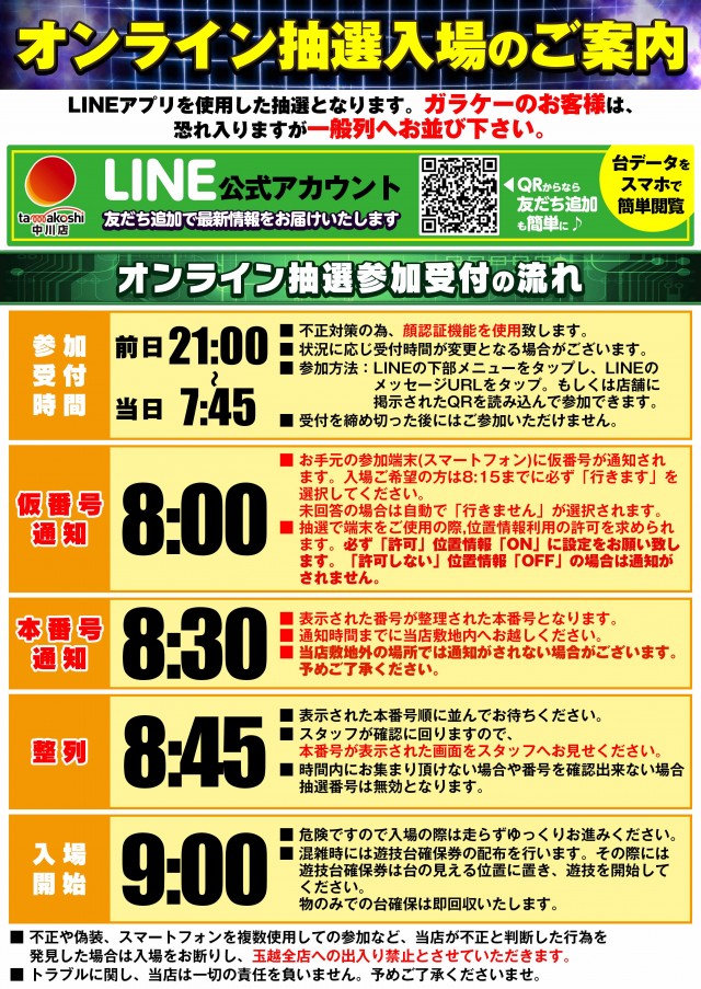 玉越中川店 開店入場のご案内❗❗
