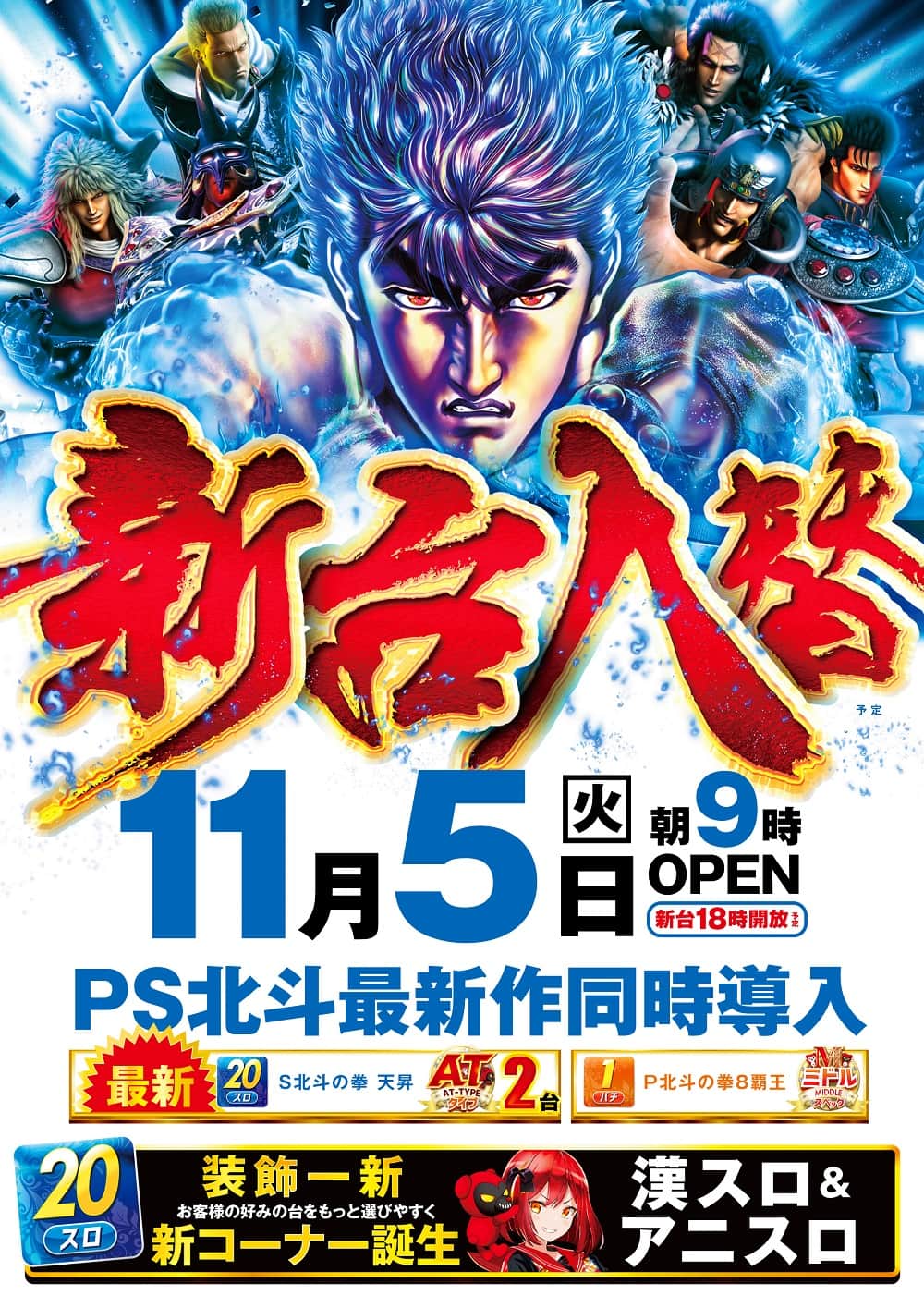 明日12月3日(月)マリオン十番町店の新台入替!1パチ増台!