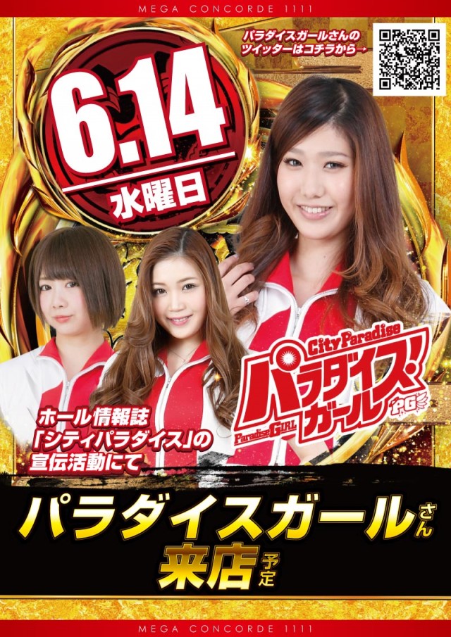 6月14日ガールさん来店全1111台メガコンへ