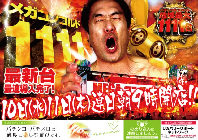 キタ――(゚∀゚)――!!メガコン全1111台9時開店!
