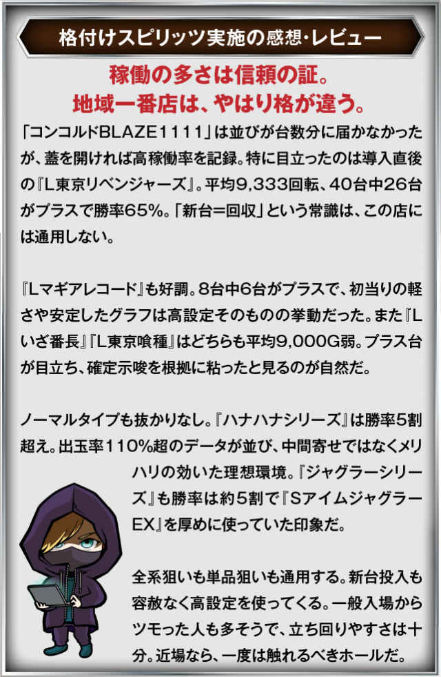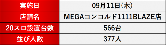 9月11日(木) MEGAコンコルド1111BLAZE店にて、DMMぱちタウンの「格付けスピリッツ」を実施。