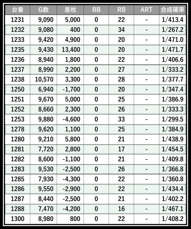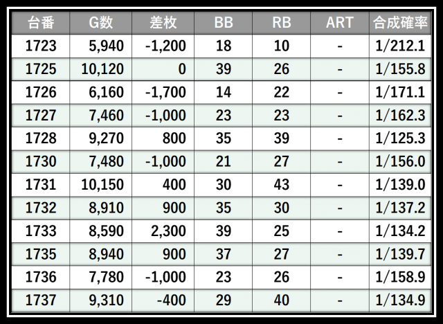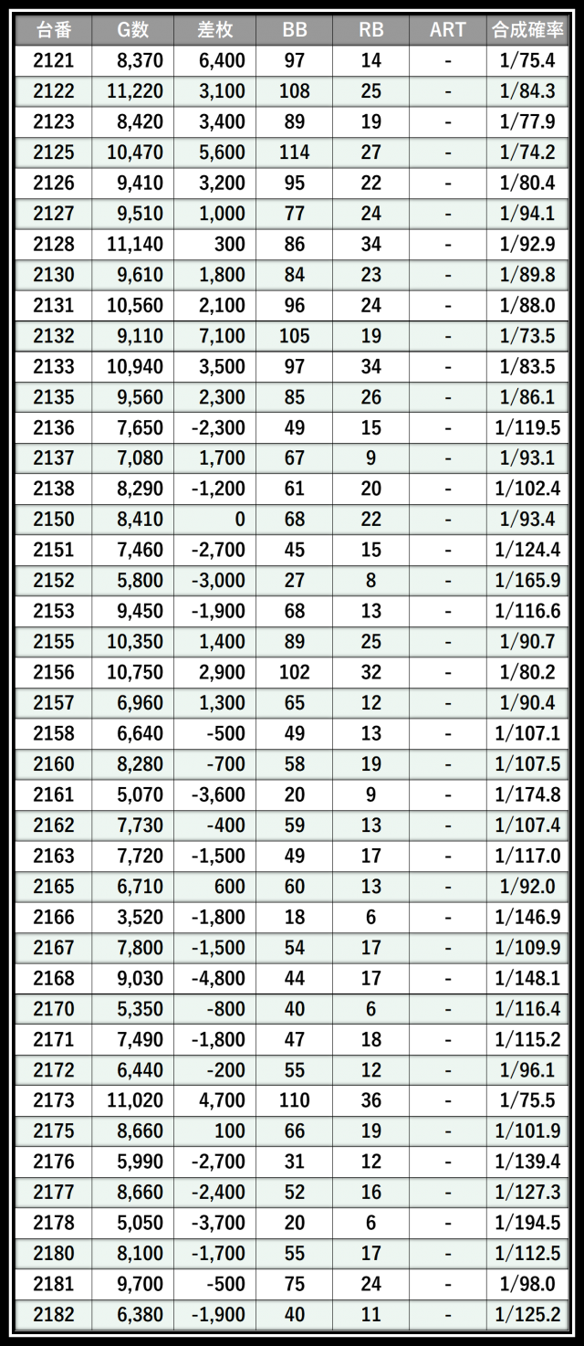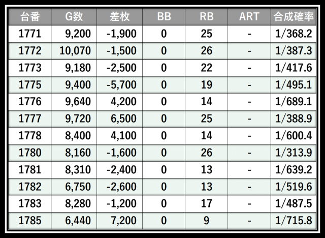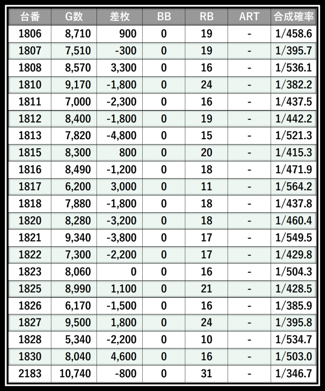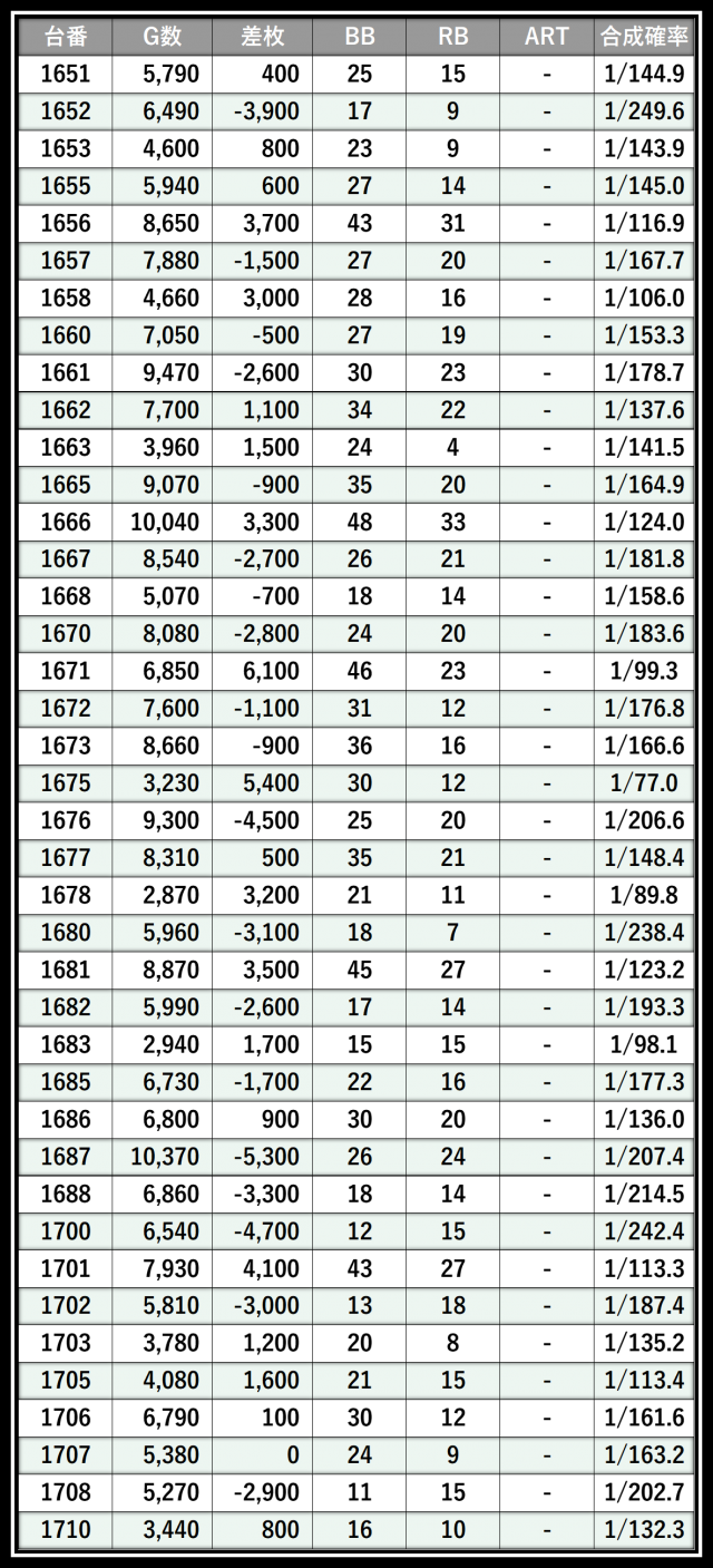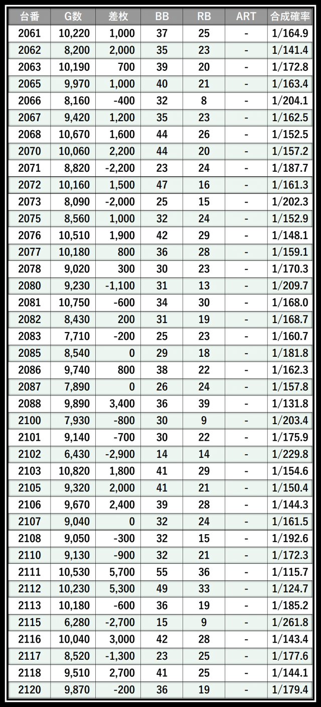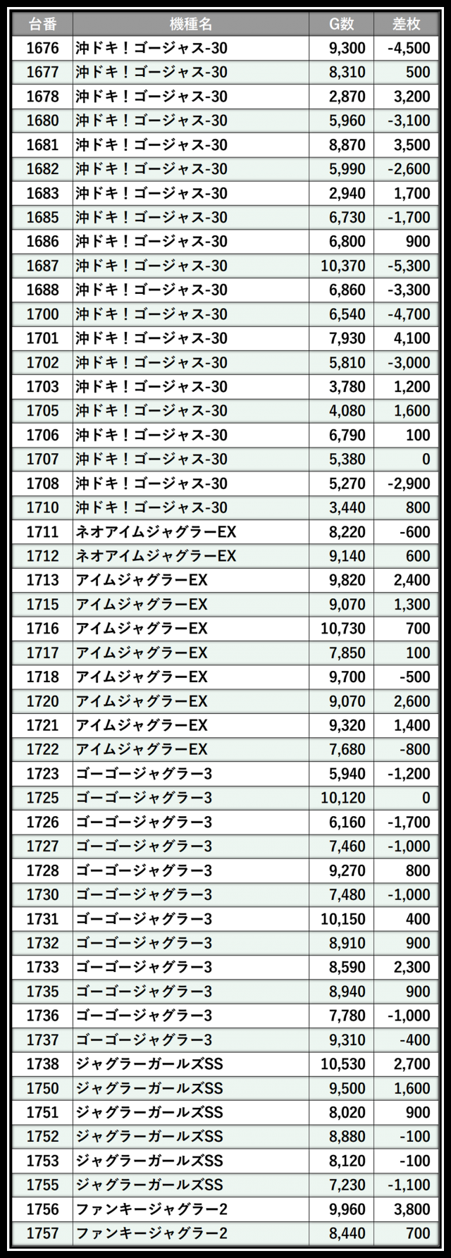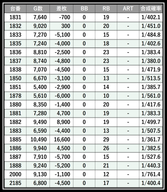 ※差枚数順に掲載しています