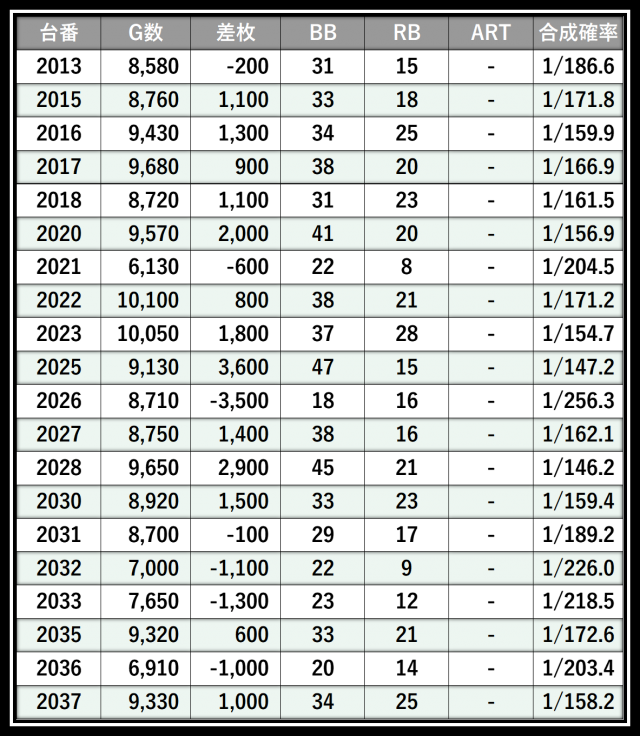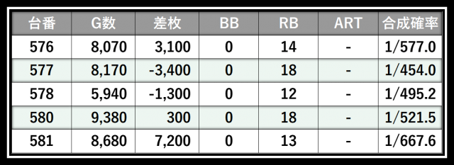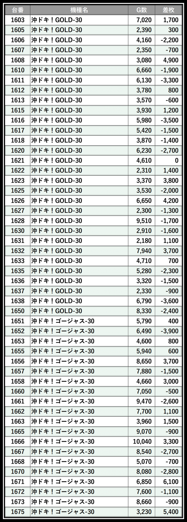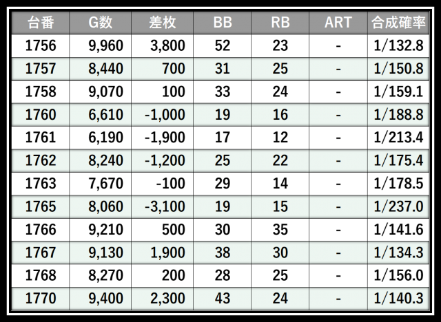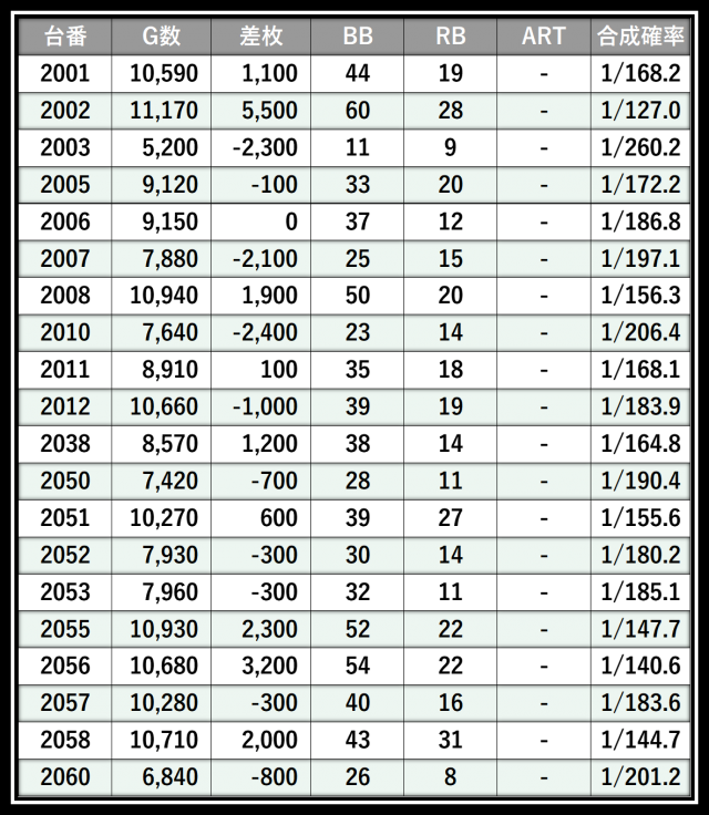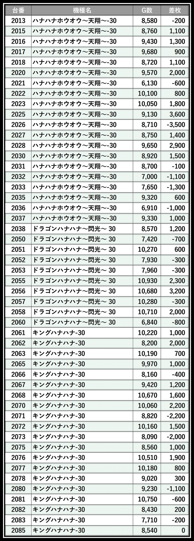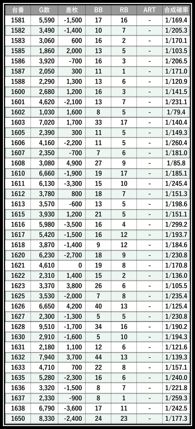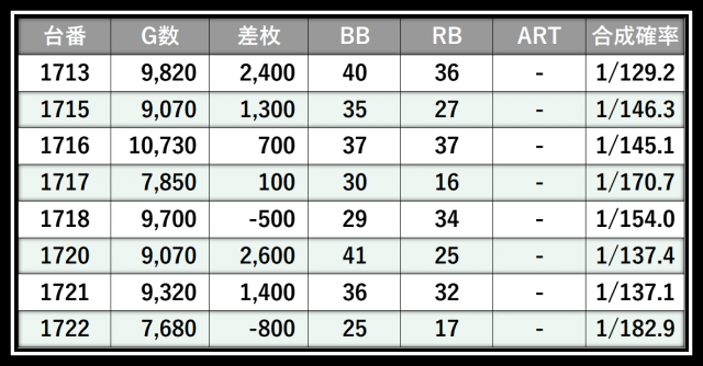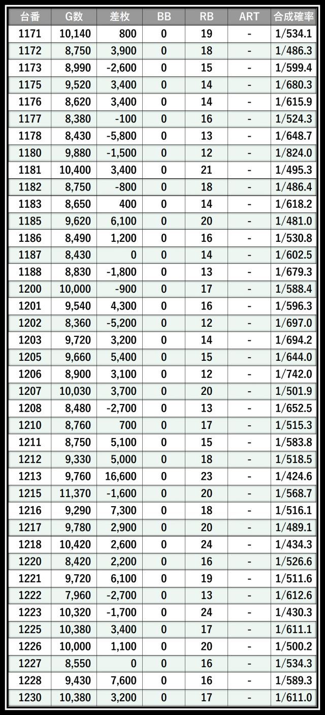 ※差枚数順に掲載しています