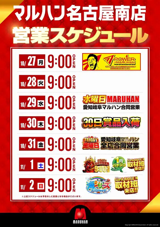 4月1日(土)🔥🔥🔥 愛知マルハン全店合同営業🔥🔥🔥