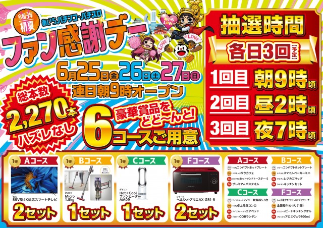 【マルハン名古屋南店】6月25日(金)ファン感 朝9時開店‼