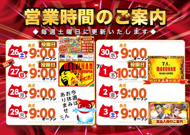 【マルハン名古屋南店】6月26日(土)ファン感 朝9時開店‼