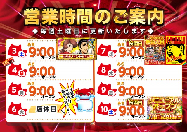 【マルハン名古屋南店】7月4日(日)朝9時開店‼