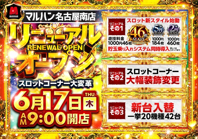 【マルハン名古屋南店】6月30日(水)朝9時開店‼