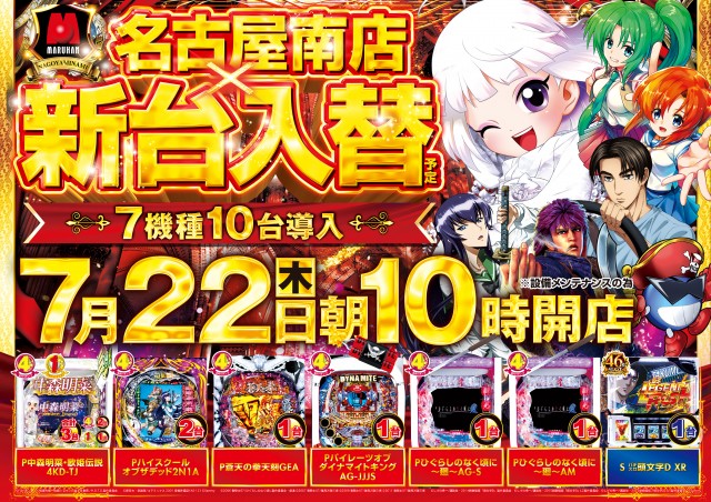 【マルハン名古屋南店】8月4日(水)新台入替 朝9時開店‼