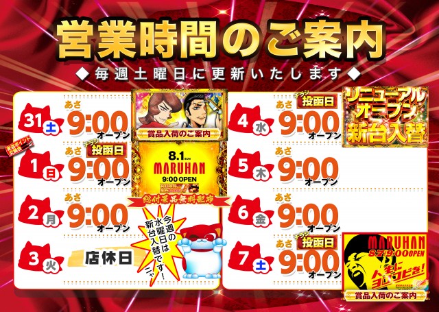 【マルハン名古屋南店】8月3日(火)店休日を頂きます。