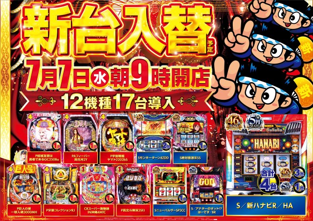 【マルハン名古屋南店】7月22日(木)10時開店‼新台入替