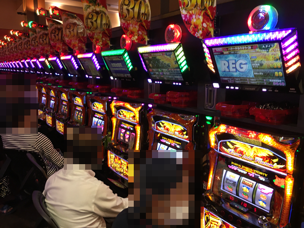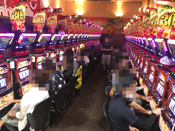 実戦機種に選んだ「ハナハナ鳳凰-30」は開店直後に大人気となっていた。