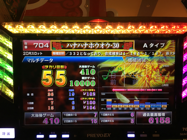 ハナハナシリーズを打つことに慣れていないものの、9時オープンといった時間的な余裕があったため、落ち着いてレバーを叩く。