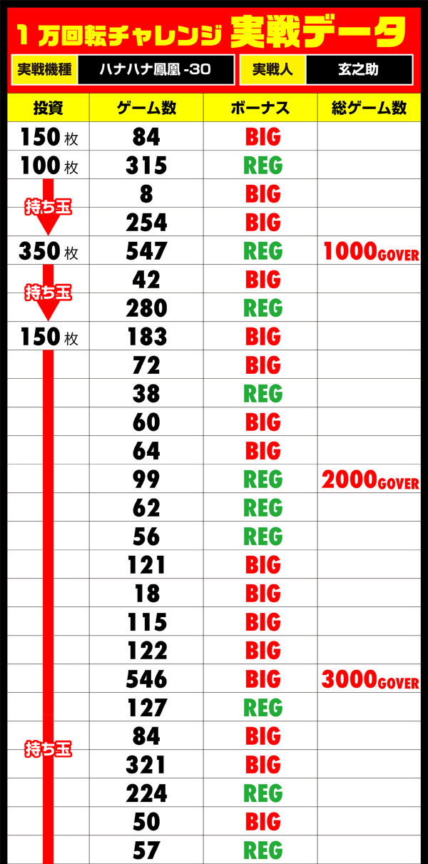 後半に大きくハマったこともあり、差枚はマイナスになってしまったが、しっかりと目的を果たした玄之助であった。