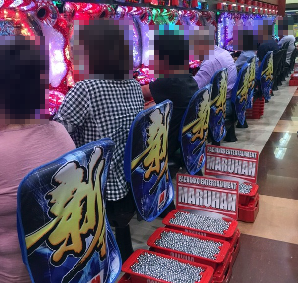 新台から定番機種まで、貸し玉料金を問わず多くのプレイヤーが笑顔をみせていた「マルハン名古屋南店」。