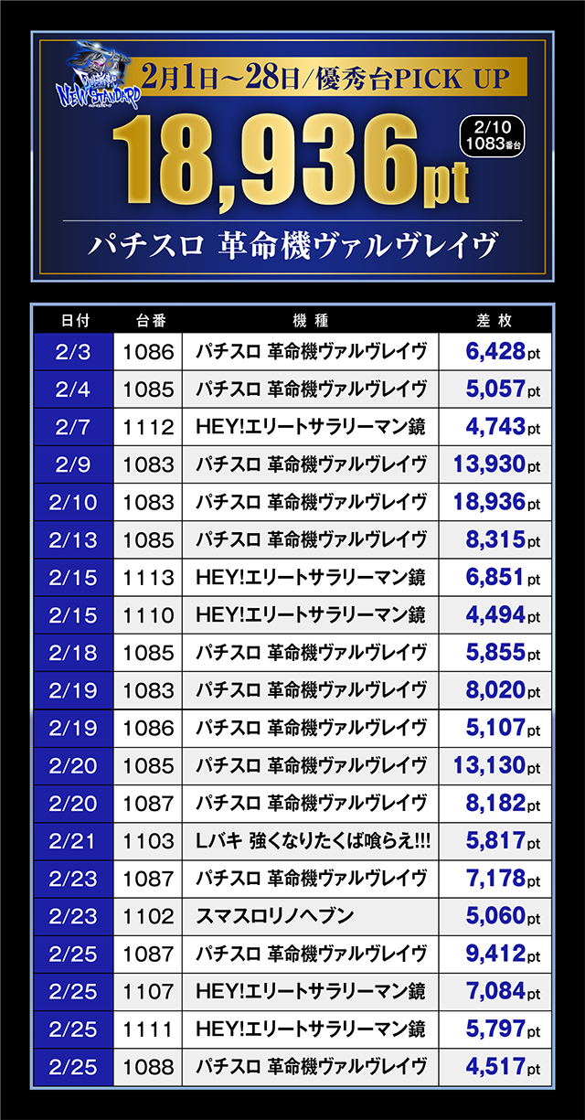 2月の優秀台PICK UP