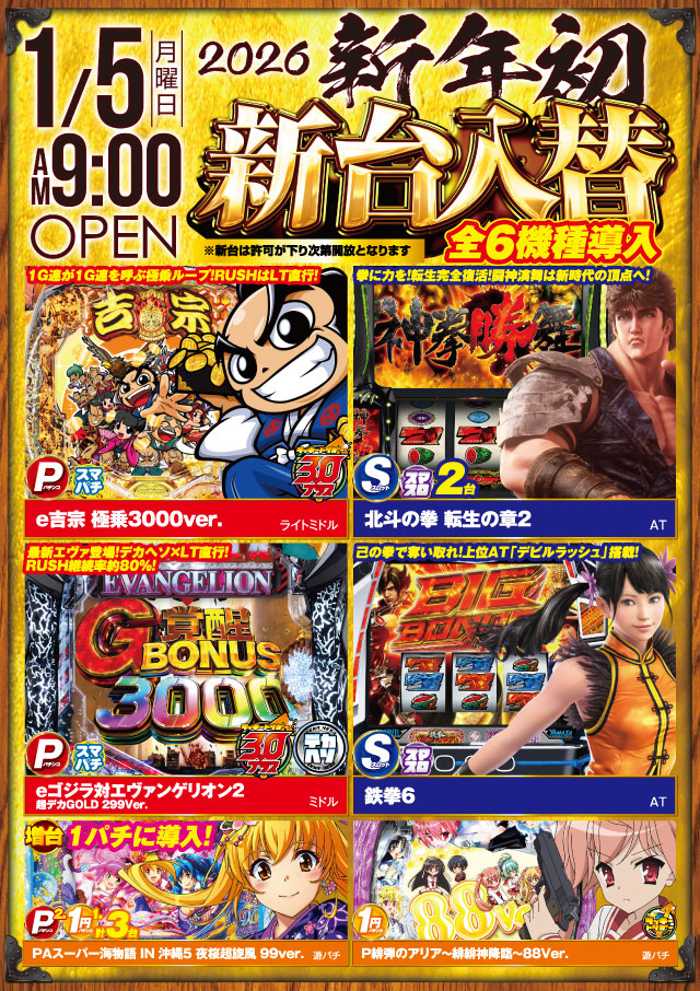 年中無休(新台入替時等は準備の為お休みする場合がございます) |