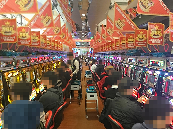 20円パチスロをチェックすると、「アナザーゴッドハーデス-奪われたZEUSver.-」や「ミリオンゴッド-神々の凱旋-」といったGODシリーズや「押忍!番長3」で、華麗なパフォーマンスを披露するプレイヤーを多数目撃。実に華やかな光景が広がっていた。