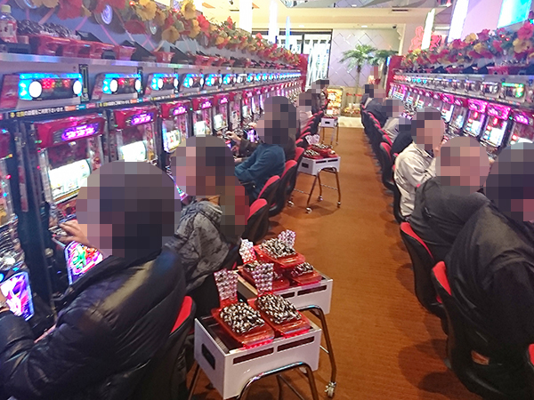 30φコーナーも大盛況。「沖ドキ!-30」や「ニューキングハナハナ-30」などで、理想的な展開を迎えているプレイヤーを複数確認することができた。