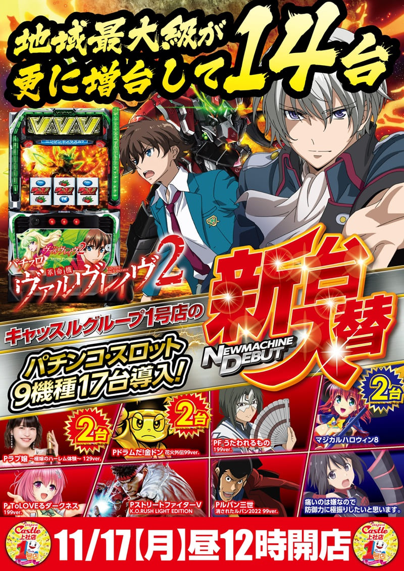 ✨11月4日✨新台入替✨昼12時開店✨一挙8機種32台導入✨