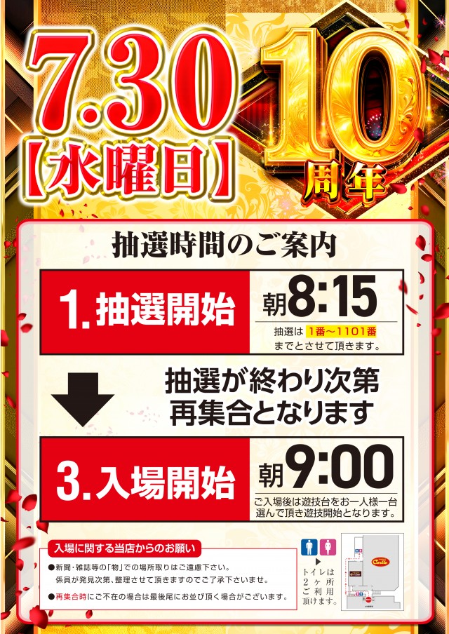 明日でキャッスル天白店は10周年!抽選は朝8:15開始!!