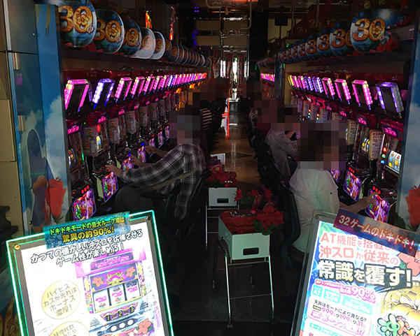 14時を過ぎた頃の20円パチスロをみてみると、「沖ドキ!-30」や「ハナハナ鳳凰-30」などの沖スロコーナーが活躍。機種の性能を上手に引き出しているような姿が多く、プレイヤーたちも満足そうであった。