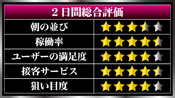 とくに、AT機などの瞬発力に定評のある機種を中心に、ART機やボーナスタイプなど、さまざまな機種が楽しまれていたことを付け加えておきたい。
