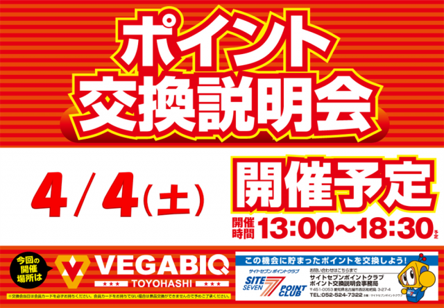 本日4日(土)ポイント交換説明会開催★朝9時開店!!