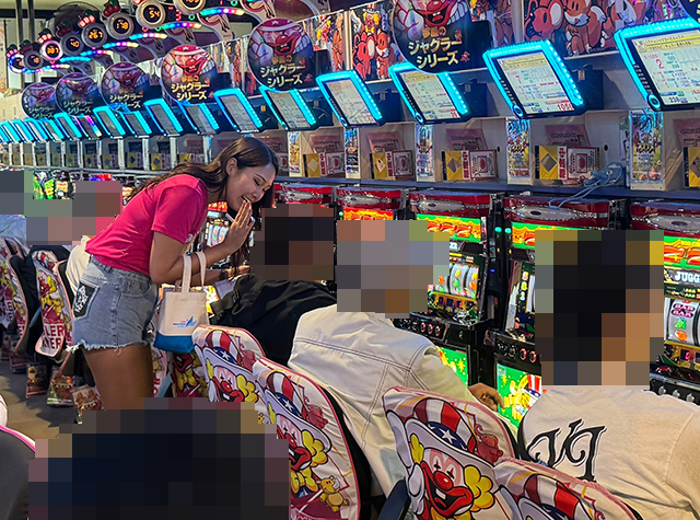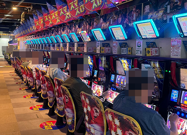 「マイジャグラーⅤ」や「アイムジャグラーEX」などがにぎわっていて、プレイヤーたちもナイススマイル☆