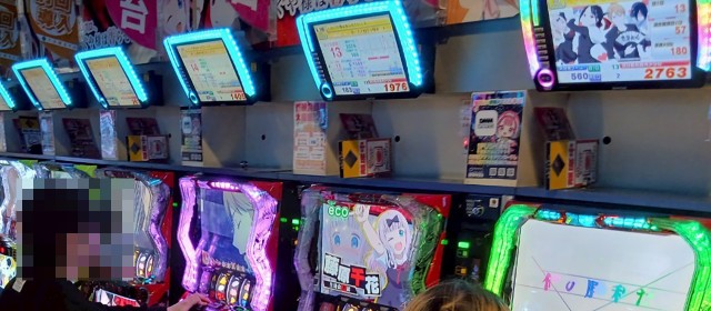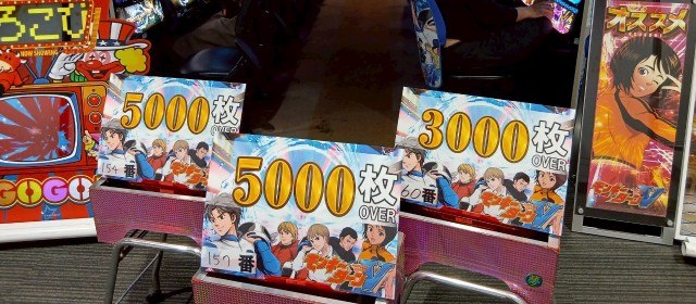 まずは冒頭に挙げた写真の通り5,000枚を突破した台がいくつも見られたスマスロコーナーをチェック。