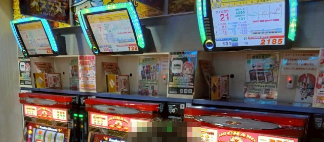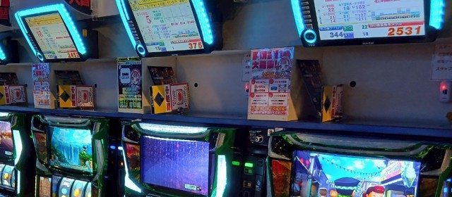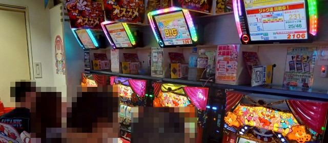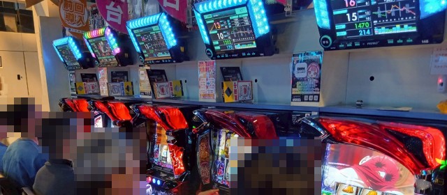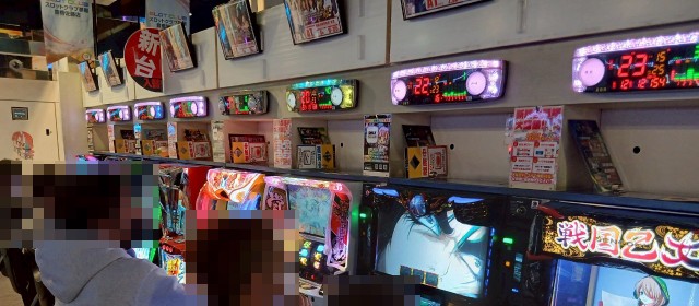 なおこの項の写真でもお分かりと思われるが、[1000円/180枚]スロも満席状態で、台の頭上には多くのボーナス回数がカウントできたことを追記しておきたい。