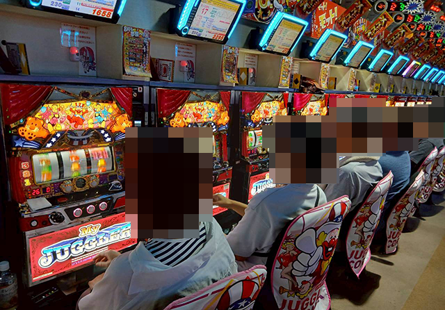 「マイジャグラーⅤ」も稼働率が高く、笑顔のプレイヤーも多い。