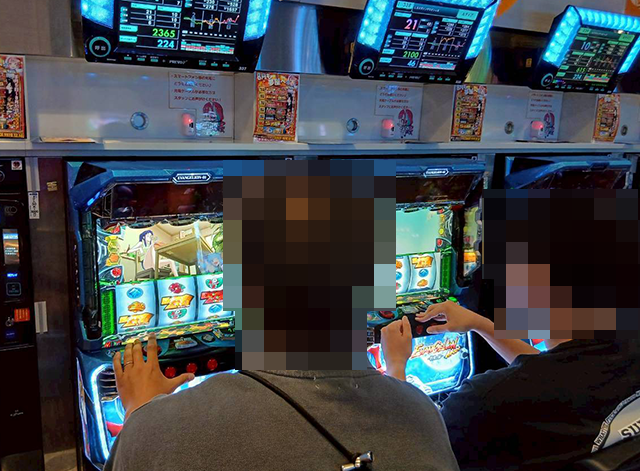 「L アズールレーン THE ANIMATION」や「L咲-Saki- 頂上決戦」も空き台はなく、どの機種にも遊技を満喫しているような姿があった。