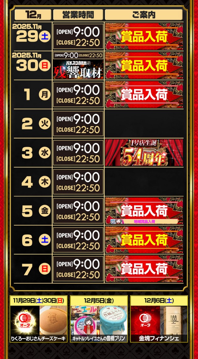 12月6.7日(土.日)★創業54周年★ 賞品入荷