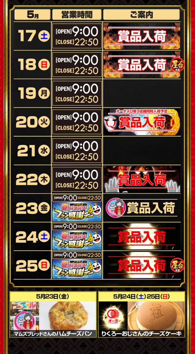 5月23日【金】★ファン感謝デー開催★1回目は11時予定!