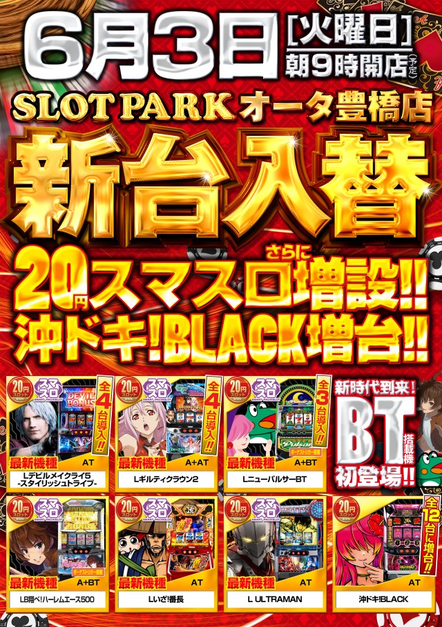 6月3日【火】★新台入替初日★抽選は8:30開始予定!