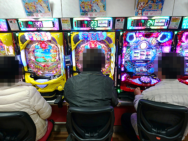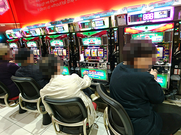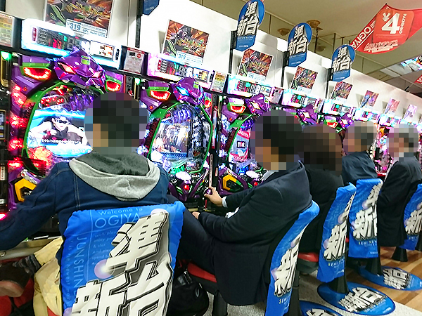 取材時、店内には既に多くのプレイヤーが遊技を楽しんでおり、パチンコ・パチスロを問わずプレイヤーたちの熱気に包まれていた。