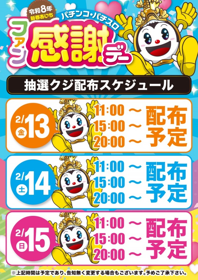 本日2月14日(土)☆ファン感☆総付配布☆屋台来店☆