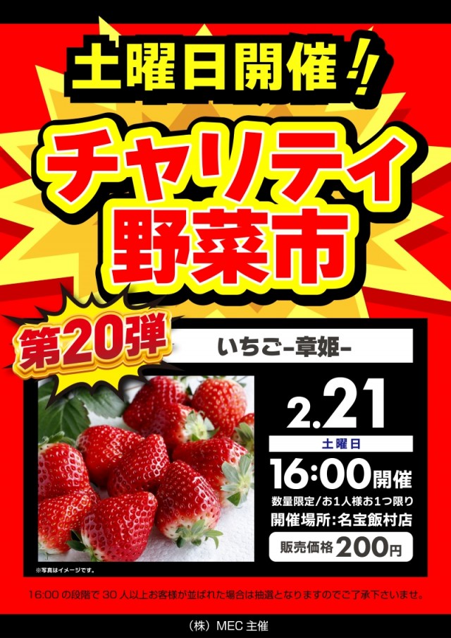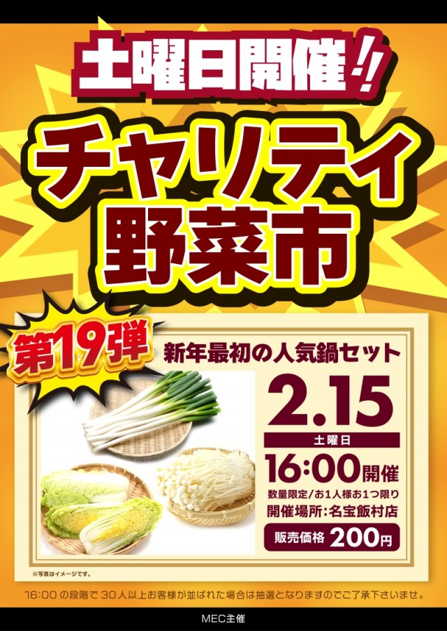 本日2月15日(日)☆ファン感☆チャリティー野菜市☆来店企画