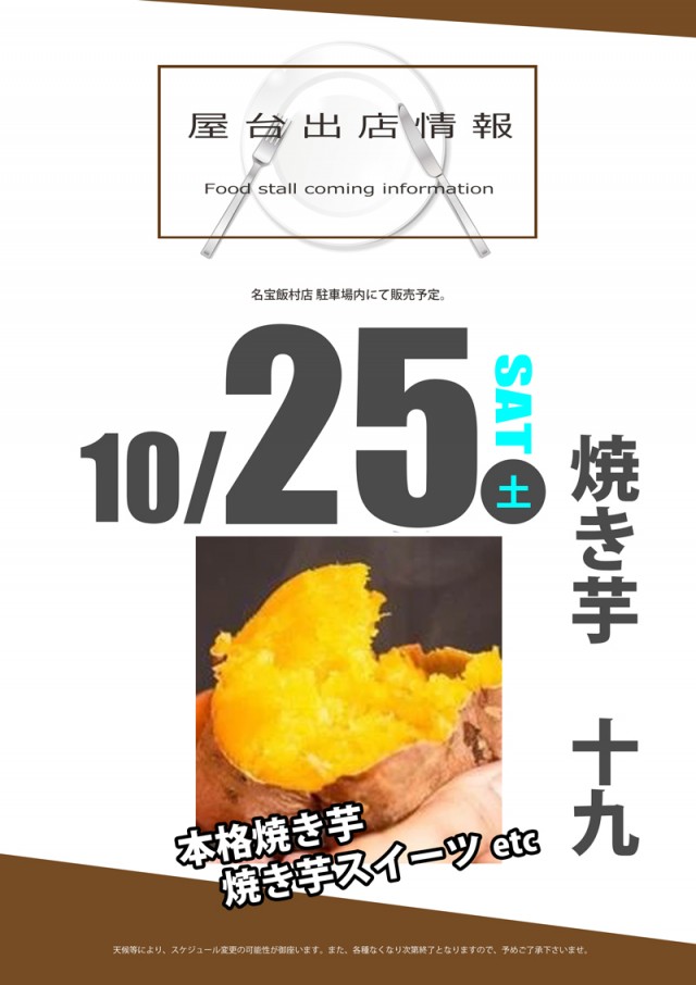 明日10月28日(火)☆安納芋プリン入荷☆屋台来店☆